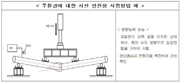 우리나라가 제안한 ‘주철관에 대한 지진 안전성 시험방법’은 주철관 연결부의 팽창, 수축, 이탈방지, 변형각 등에 대한 시험방법을 규정하는 표준안으로 지반 침하 및 지진 발생시 덕타일 주철관 및 그 부속품의 특성평가에 활용할 수 있는 기술이다. 한국기계전기전자시험연구원과 부산대학교 지진방재연구센터가 국가기술표준원의 표준기술력향상사업의 지원을 통해 개발했다.