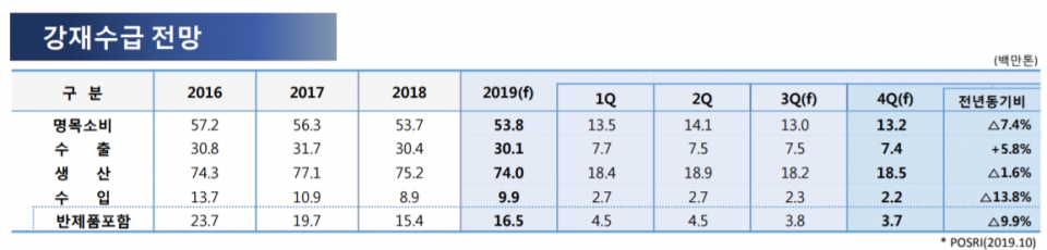 아울러 국내 철강 명목소비는 4분기 1,320만톤을 기록해 올해 총 5,380만톤이 소비될 것으로 봤다. 전년 소비량보다 약 100만톤 증가할 것으로 내다봤다.