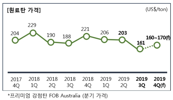 이는 중국의 2020년 석탄 수입 쿼터 갱신 대비와 10월 중순 이후 수입탄 구매 재개 및 호주 우기(12~3월)의 영향을 받은 것으로 풀이된다. 또한 북미와 러시아 지역의 혹한 등 석탄 공급 차질 우려한 철강사들의 재고 확충 수요로 가격이 반등할 요소가 있다고 내다봤다.