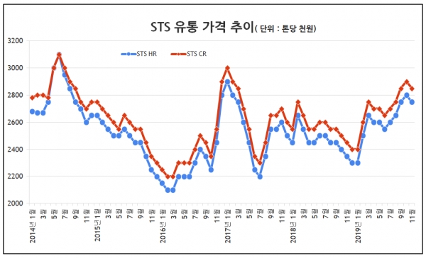 11월 들어 유럽과 아시아 등 글로벌 STS업체들 역시 대부분 가격 동결 내지 소폭 조정했다.