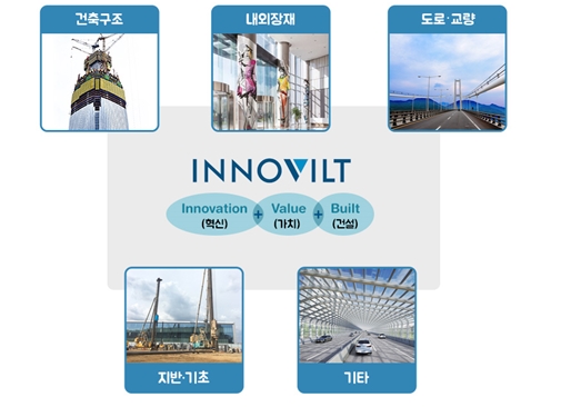'이노빌트(INNOVILT)'는 혁신의Innovation, 가치의 Value, 건설의 Built를 결합한 합성어로 친환경성과 독창성을 담은 미래기술 혁신을 통해 강건재의 가치를 높이겠다는 의미가 담겨있다.