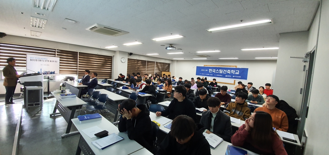 상명대 건설시스템공학과(천안)에서 학부 및 대학원생 90여명이 참석한 가운데 열린 이번 교육은 ▲철강산업 현황 및 강구조 활성화 방안(철강협회 김건수 선임), ▲강재 최신기술 및 이용기술 동향(현대제철 황승연 매니저), ▲강구조 활용 신기술 적용 설계 사례(센구조연구소 김태원 소장)를 중심으로 이뤄졌다.