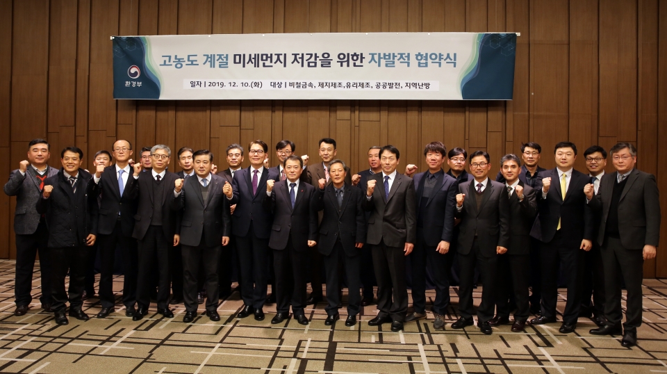 환경부는 10일 오후 서울 마포구 스탠포드호텔에서 비철금속, 유리, 제지, 지역난방, 공공발전, 시멘트, 건설 등 7개 업종 43개 업체와 ‘고농도 계절 미세먼지 저감을 위한 자발적 협약’을 체결했다고 밝혔다.