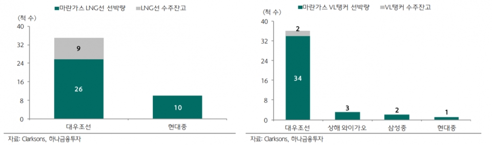 박무현 애널리스트는 “대우조선해양은 각 선종에서 세계 1위 선사들을 주력 고객으로 갖고 있다”며 “대우조선해양의 선박 인도량이 늘어날수록 글로벌 해양시장에서 용선료 차별화가 더욱 심화될 것이다”고 전망했다. 이는 연비 관련 기술경쟁력을 갖고 있는 대우조선해양이 점점 더 많은 글로벌 선수사들에 관심과 집중을 받을 것이란 설명이다.