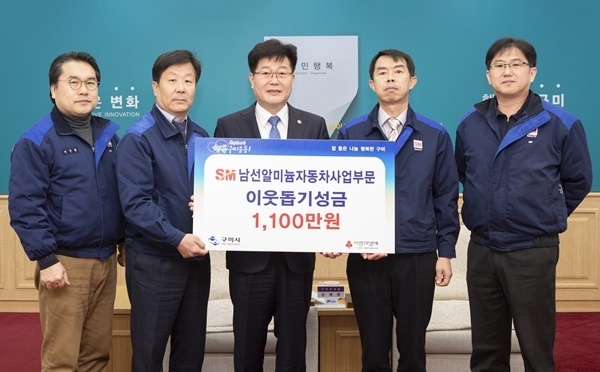 알루미늄 압출 및 자동차 부품업체인 남선알미늄(대표 이상일)은 지난 21일 구미시에 복지 사각지대에 놓인 위기가구를 비롯한 어려운 이웃에게 성금 1,100만원을 기부했다.