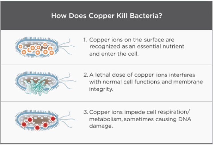 이처럼 동과 동 함량 60% 이상의 동합금에서 효력을 갖는 항균동은 동(구리) 자체가 지닌 천연 항균성으로 교차오염 등 각종 균으로부터 전염성 감염 질환 예방에 매우 효과적이다. 또한 동이 포함된 제균장치는 감염을 유발하는 대기 속 곰팡이 균과 같이 공기를 통해 전파되는 오염 물질을 제거한다는 사실도 입증된 바 있다.