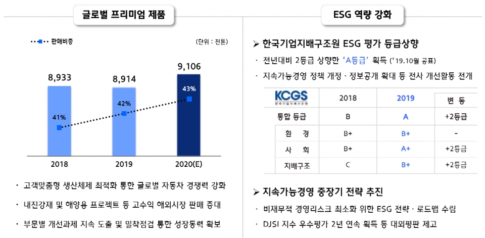 실제 회사의 글로벌 제품의 판매비중은 2018년 41%, 2019년 42%로 단계적으로 증가했으며, 2020년은 총 판매량 910만6,000톤에서 43%로 비중을 확대할 계획이다.