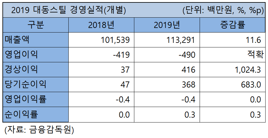 2019年 대동스틸, 당기순익 8배 증가 ‘매출액 1,100億 진입’