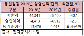 동일철강, 형강사업부 정리에 지난해 매출액 전년 대비 40.1% 감소