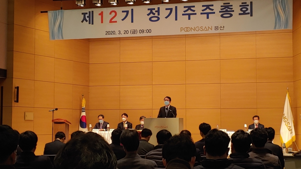 풍산은 20일 오전 서울 충정로 사옥 대강당에서 진행된 제12기 주주총회에서 재무제표 승인, 이사 및 감사위원 선임, 이사 보수한도 승인 등의 안건을 처리했다.