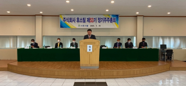 강관 제조업체 휴스틸(대표 박훈)이 지난 25일 충남 당진공장에서 제53기 정기주주총회를 개최했다.