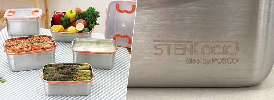 씨앤티코리아가 생산하는 스테인리스 밀폐 용기 ‘스텐락’. 제품 표면에 ‘Steel by POSCO’를 새겨제품 신뢰도를 한층 높였다.