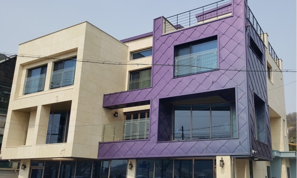 또 평이음강판을 새롭게 출시하면서 레보엠PP와 더불어 수요를 늘려가고 있다. 평이음강판도 레보엠PP와 마찬가지로 색상이 변하며 서로 연결해 외장재로 적용할 수 있다. 강판끼리 쉽게 연결이 가능해 공사기간을 대폭 단축시킬 수 있으며 태풍에도 견딜 수 있을 정도로 내구성이 좋다.