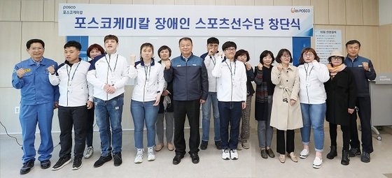 포스코케미칼은 선수단을 회사로 초청해 장애인 선수단 창단식을 열었다고 23일 밝혔다. 이날 창단식에는 선수, 보호자와 함께 민경준 포스코케미칼 대표이사, 전국 장애인체육회 관계자들이 참석했다.