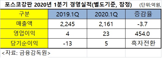 포스코강판은 코로나19 영향으로 수요가 줄어들면서 매출액은 감소했지만 1분기 가격 인상이 적용되며 지난해에 비해 수익성을 개선한 것으로 보인다.
