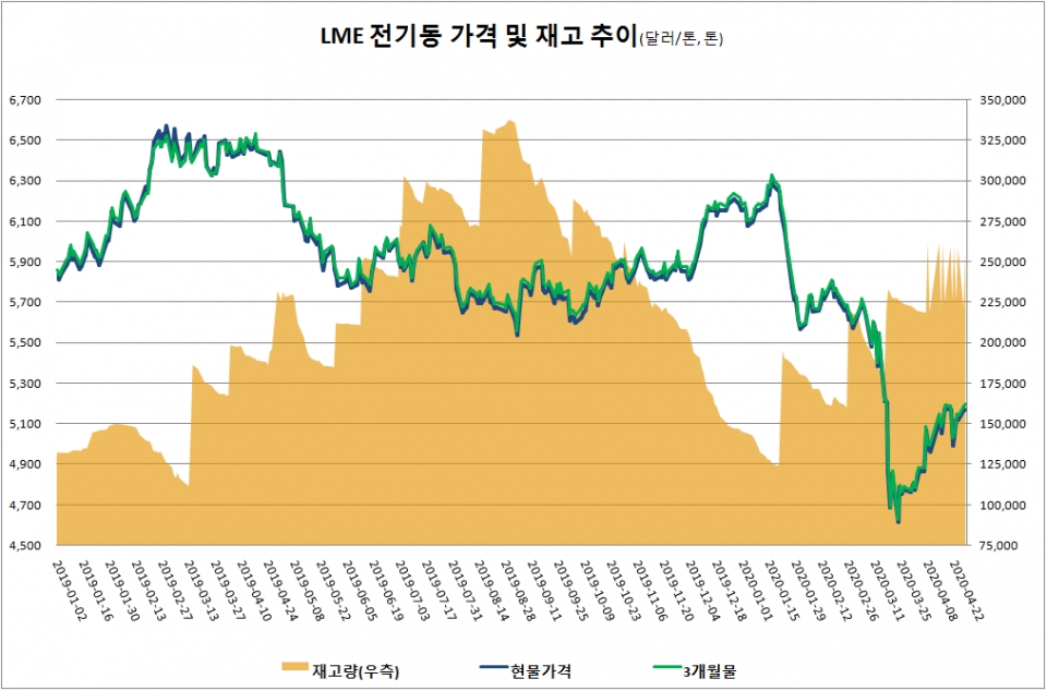 이처럼 최대 수요 국가인 중국에서 수요 회복에 대한 기대가 확산된 가운데 전기동 3개월물 가격이 3월 17일 이후 처음으로 톤당 5,200달러 선을 넘어섰다.