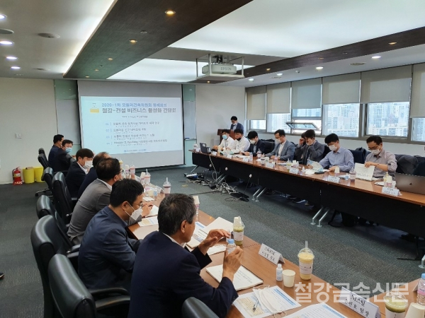 한국철강협회 강구조센터(회장 포스코 김상균 상무) 산하 모듈러건축위원회는 6월 5일 한국철강협회 대회의실에서 ‘철강-건설 모듈러건축 비즈니스 활성화 간담회’를 열고 기존 교육․홍보 중심의 위원회 운영 방향을 정책 분야로 확대 운영할 계획이라고 밝혔다.