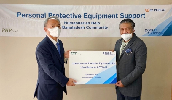 포스코인터내셔널은 방글라데시에 방호복 키트 1,000개와 마스크 2,000개를 전달했다고 8일 밝혔다.