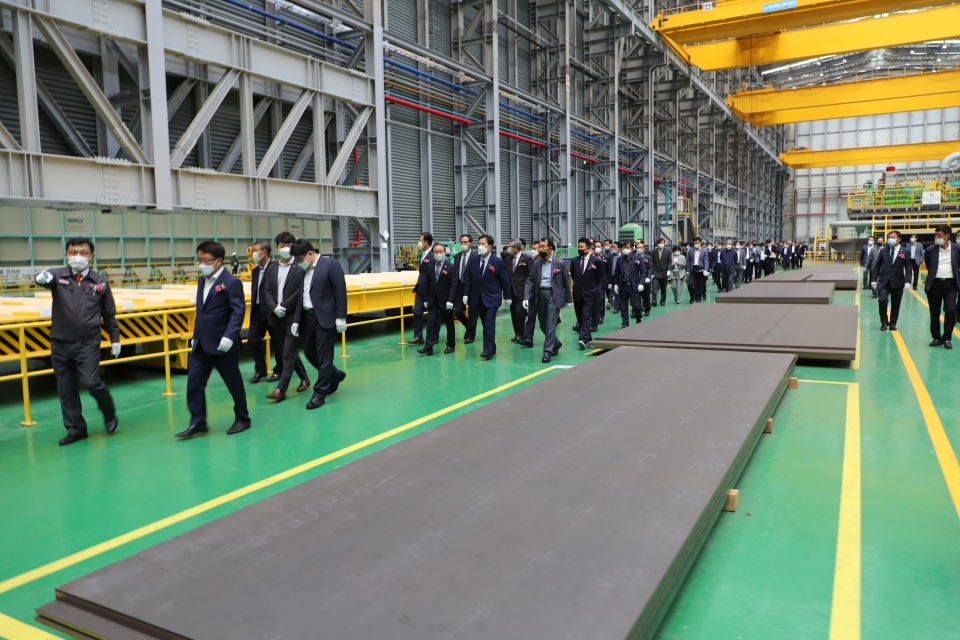 ▲(왼쪽 첫째부터) SM스틸 김기호 대표이사가 포스코 송경화 STS 마케팅실장을 비롯한 내외빈을 안내하고 있다.