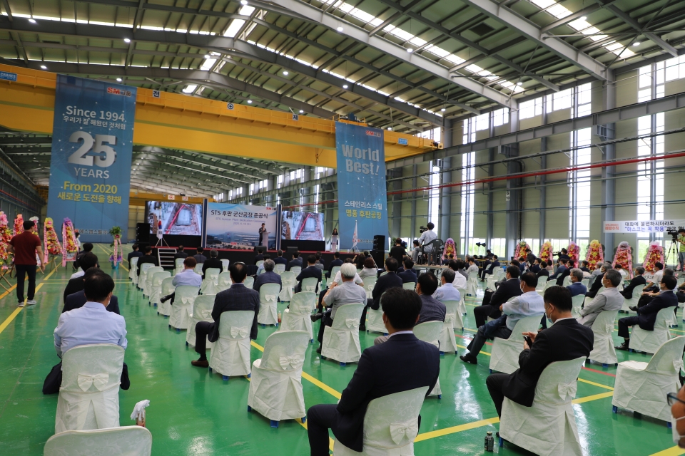 SM그룹 우오현 회장은 이날 인사말을 통해 "SM스틸은 지난 25년간 국내 스테인리스 산업의 선발주자로서의 소임을 다해왔다. 올해를 기점으로 새로운 도약과 함께 국내 철강산업의 발전에 기여함과 동시에 존경받는 기업으로 성장하기를 바란다"면서 "이제 우리는 새로운 희망과 기대로 한국 스테인리스 산업의 새로운 미래를 개척하고자 한다. 이곳 SM스틸 군산 STS 후판 공장이 세계를 누비는 명품 STS 후판의 생산 기지로서 군산과 국가 경제 발전에 당당히 기여할 것을 확신한다"고 강조했다.