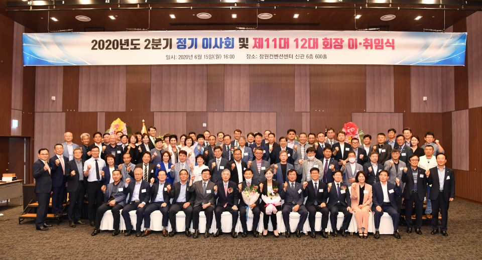 ▲(사진 앞줄 여덟째) 신화철강 정현숙 대표이사가 중소기업융합경남연합회 제12대 신임 회장에 취임했다.