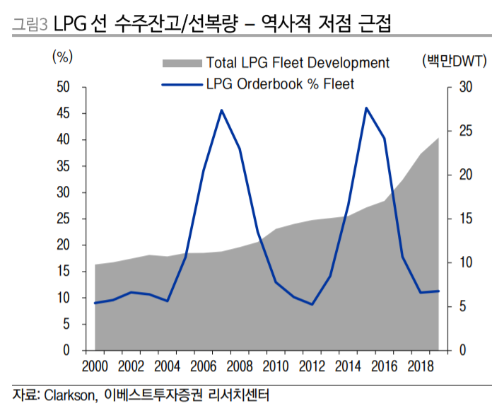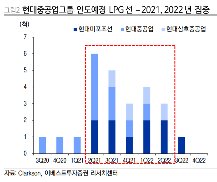 박 연구원은 “세진중공업은 현대미포조선으로부터 액화석유가스(LPG) 탱크 관련 수주를 100% 수준으로 수주받고 있다”며 “LPG 탱크 납품이 선박 인도 3~6개월 전에 이뤄지는 점, 현대미포조선의 2021년 2분기까지의 인도 예정물량이 10척 수준인 점 등을 감안하면 오는 2021년 다수의 LPG 탱크를 수주할 가능성이 있다”고 주장했다.