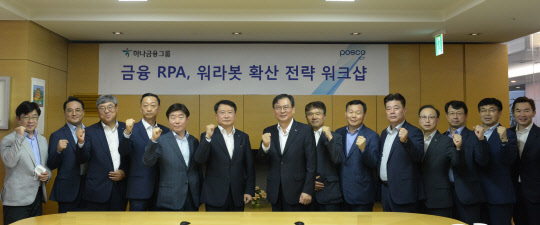 포스코ICT(대표 손건재) 경영진과 하나금융그룹(회장 김정태) IT담당 임원들이 포스트 코로나 시대 금융권 RPA(로봇업무자동화) 확산에 앞장서고 있다.