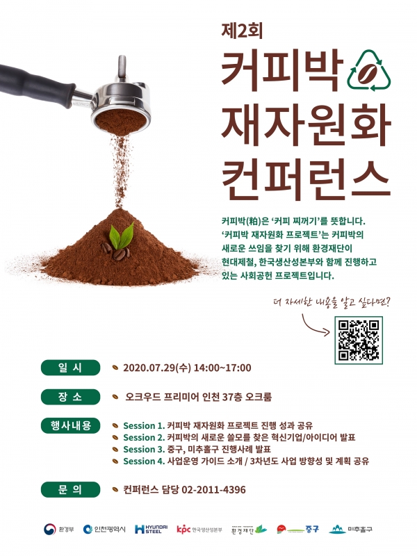 이번 ‘제2회 커피박 재자원화 컨퍼런스’에서는 커피박 재자원화 프로젝트의 인천시 전역 확산을 위해 인천시 내 8개 지자체의 유관부서를 대상으로 커피박 재자원화 프로젝트를 소개할 예정이다. 아울러 프로젝트 진행성과 공유 및 커피박 업사이클링 지원사업 공모 기업 사례 발표 등이 진행될 계획이다.