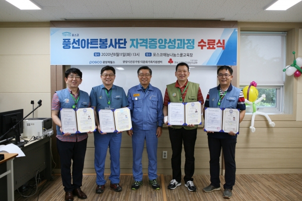 포스코 광양제철소(소장 이시우)가 지난 11일 나눔스쿨을 적극 활용해 풍선아트 3급 자격증을 취득한 ‘하늬바람 풍선아트 봉사단’ 단원 34명에 대한 수료식 행사를 가졌다.