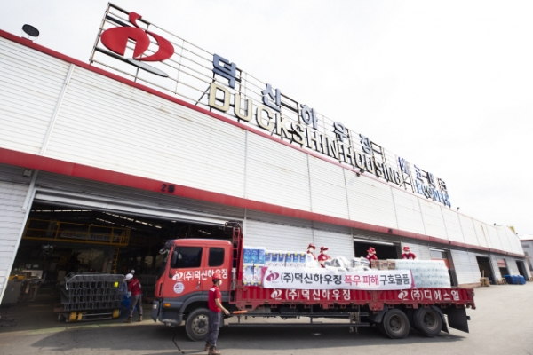 건축용 데크플레이트 제조업체 덕신하우징(회장 김명환)이 집중호우로 피해를 입은 이재민 돕기에 적극적으로 동참하기 위해 특별재난지역으로 선포된 충남 천안시에 약 1000만원 상당의 긴급구호물품을 전달했다고 14일 밝혔다.
