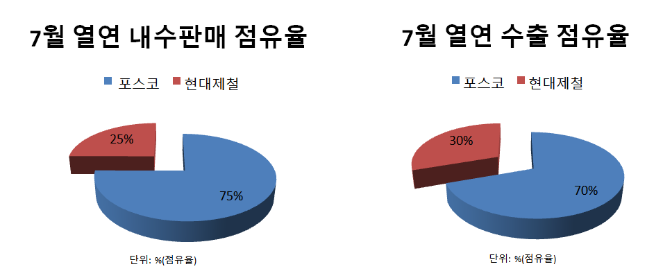 업체별로는 포스코가 전월보다 2.2% 많은 양을, 현대제철이 전월보다 8.2% 적은 양을 판매했다. 수요업계와 일반 제조업계의 하반기 반등 기대로 열연 소비심리가 바닥을 확인한 듯 보인다. 1~7월 내수판매는 407만9천톤 수준으로 전년 동기 대비 2.5% 감소했다.