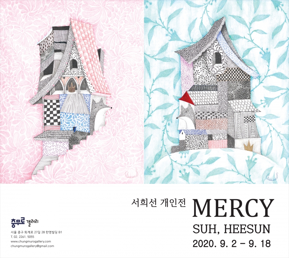 적당한 소박함을 지닌 종이의 질감, 차가우면서도 친밀한 느낌의 연필의 질감, 섬세하고 지나치지 않는 담백한 색연필, 답답하기 그지없는 너무 가녀린 세필 붓 등의 재료들은 나의 작업 속에서 Mercy 자비를 이야기하기에 안성맞춤이며 그것들과 또 다른 하나의 상상 속 풍경을 이야기하며 만들어 낸다.