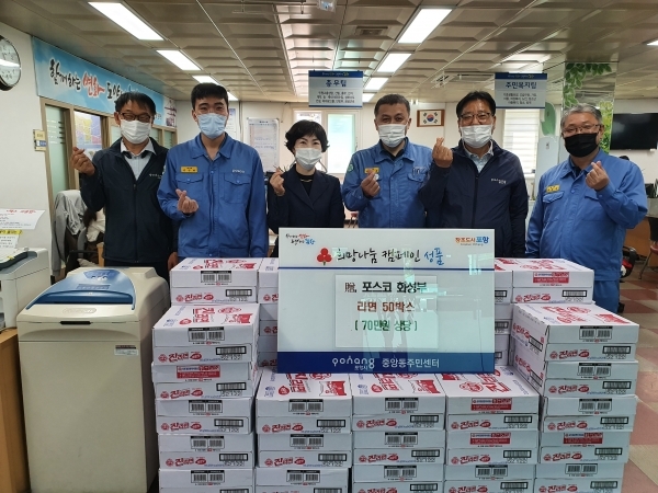 포스코 포항제철소 화성부는 14일 추석 명절을 앞두고 관내 취약계층을 위해 중앙동 행정복지센터를 방문해 라면 50박스(70만원 상당)를 기탁했다.