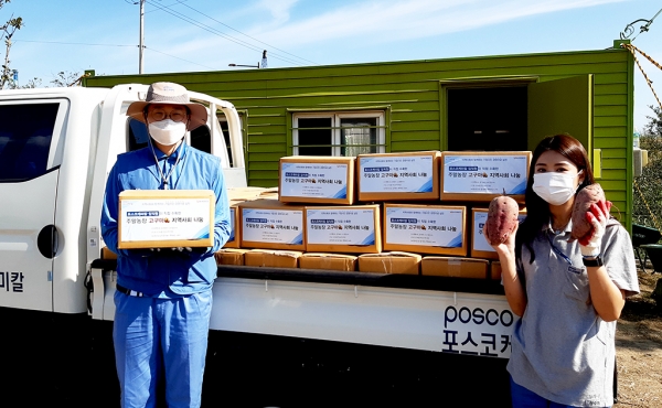 이번에 전달된 고구마는 포항지역 임직원들이 올 봄부터 주말농장에서 직접 재배한 작물이다. 임직원들은 점심시간과 주말 등을 활용해 부서원과 가족과 함께 꾸준히 작물을 가꿔왔다. 포스코케미칼은 포항 청림동에 임직원과 지역주민을 위한 3천960㎡ 규모의 주말농장을 운영하고 있다.