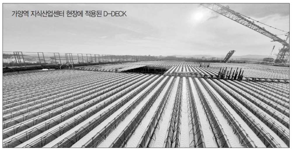 더불어 슬라브용 데크플레이트 ‘D-Deck(20-003)’는 포스코의 고성능 아연도금강판을 포밍(Forming) 성형한 거푸집용 데크플레이트다. D-Deck는 공장제작품을 현장에서 조립만 함으로써, 현장 공정을 간소화시켜 공기단축이 가능하다. 건설신기술지정(제881호), 내화구조인정, 한국건축구조기술사회 기술인증을 취득하였다.