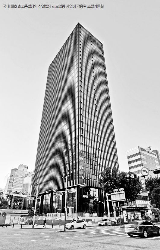 스틸커튼월은 다양한 입면 표현이 가능한 특징 덕분에 건축물의 미적 완성도를 높이는 고급 외장재로 사랑받고 있다. 적용 건축물의 디자인적 가치가 부각됨에 따라 건축물 차별화 수요가 증가하고, 고층화 추세를 보이는 건축시장에 활용 빈도가 점차 증가하고 있는 제품이다.