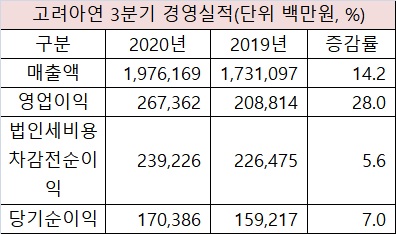 코로나19 장기화에도 고려아연(회장 최창근)의 3분기 실적은 아연과 연 그리고 귀금속 가격 상승 등의 영향으로 지난해와 비교해 큰 폭의 증가를 나타냈다.