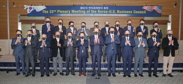 전국경제인연합회와 미국상공회의소는 17일과 18일 이틀간 서울 여의도 전경련 콘퍼런스센터에서 한·미 간 최상위 민간 경제협력채널인 한·미 재계회의(위원장 허창수) 32차 총회 개회식을 열었다. 한미통상관계 심화와 경제성장·혁신을 주제로 열린 이번 합동회의에서는 한미통상현안 해소 방안과 한국판 뉴딜‧디지털 이코노미 등 코로나19시대 위기극복 협력과제들이 논의됐다.