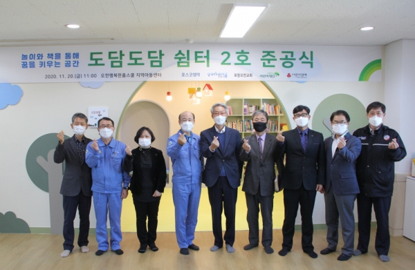 제강용 알루미늄 탈산제 제조업체인 포스코엠텍(대표 민중기)은 아동 학습놀이문화 공간인 도담도담 쉼터 2호를 준공했다고 최근 밝혔다.