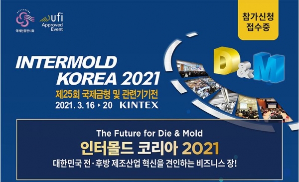 한국금형공업협동조합(이하 금형조합)이 오는 2021년 3월 16일부터 20일까지 5일간 일산 KINTEX에서 개최하는 ‘INTERMOLD KOREA 2021(제25회 국제금형 및 관련기기전)’ 참가기업을 모집한다.