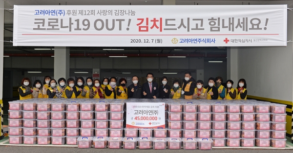 고려아연 온산제련소(백순흠 소장)는 최근 대한적십자사 울산지사와 울산적십자사에서 ‘제12회 사랑의 김장 나눔 행사’를 개최했다.