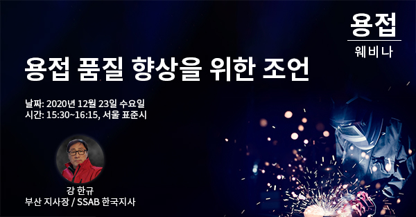 스웨덴 철강업체 SSAB 한국지사에서 오는 23일 오후 3시부터 75분간 용접 웨비나(웹세미나)를 개최한다고 16일 밝혔다.
