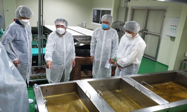 포항제철소 QSS 컨설턴트가 소규모 식품업체를 방문해 조리장의 위생상태 개선을 돕고 있다