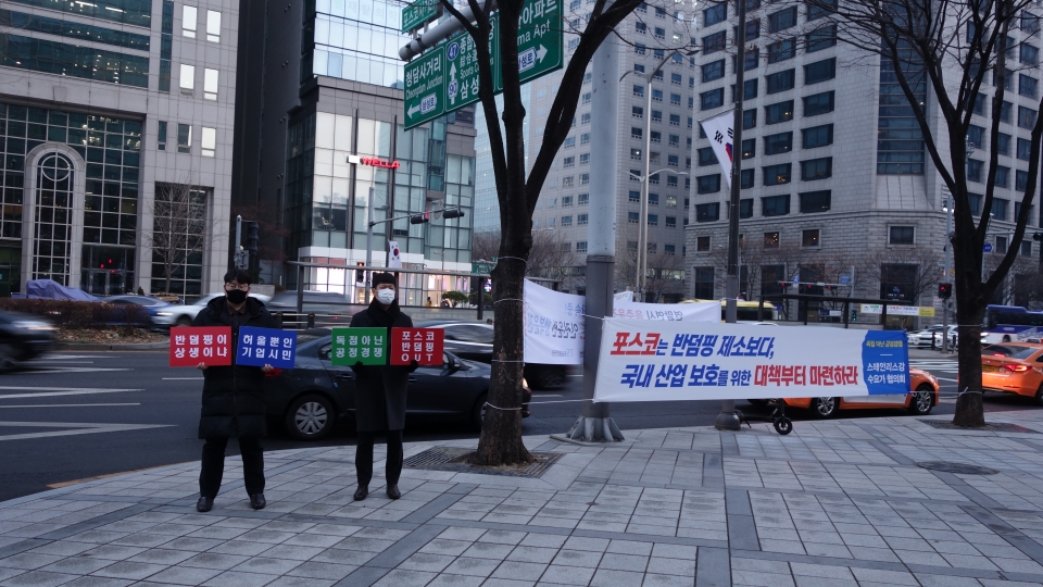 ‘스테인리스 수요가 협의회’가 금일 오전 서울시 강남구 대치동 포스코 사옥 앞에서 스테인리스(STS) 반덤핑 제소에 반대하는 시위를 진행했다.