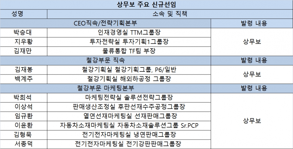 포스코가 정기 인사를 통해 상무보 신규 선임과 재선임을 단행했다. 이번 인사는 2021년 1월 4일부터 적용된다.