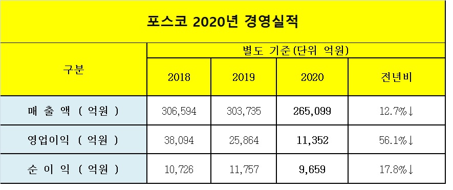 포스코(회장 최정우)가 지난해 코로나19 여파로 인한 철강 수요 산업 침체에도 선제적인 비상경영을 통해 실적 감소를 최소화시켰다.