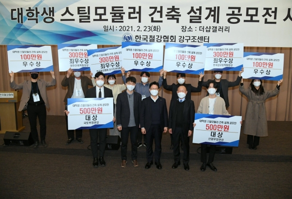 한국철강협회 강구조센터(회장: 포스코 김상균 전무) 산하 모듈러건축위원회가 2월 23일 서울시 강남구 도산대로 더샵갤러리에서 '대학생 스틸모듈러 건축 설계 공모전 시상식'을 진행했다고 밝혔다.