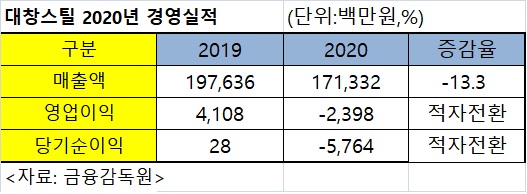 포스코 가공센터 대창스틸(대표 문창복, 문경석)이 지난해 부진한 실적을 기록했다.