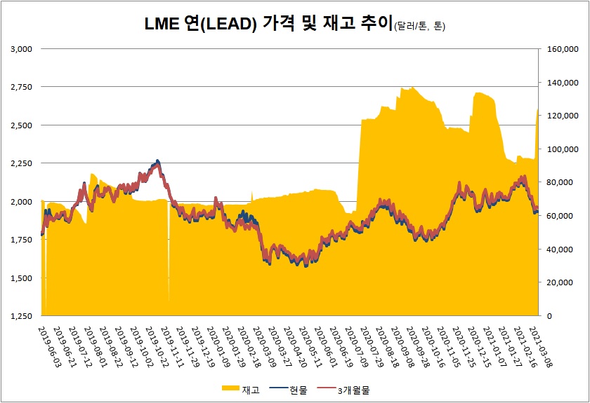 지난주 갑작스러운 런던금속거래소(LME) 연(Lead) 재고 폭증에 가격 하락이 우려되고 있다.