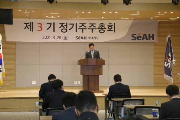 세아제강은 26일 오전 10시 서울 마포구 상장회사회관 대강당에서 제3기 주주총회를 개최했다. 주요 안건으로는 지난해 재무제표 및 연결재무제표 승인의 건과 사내 이사 승인의 건을 통과시켰다.